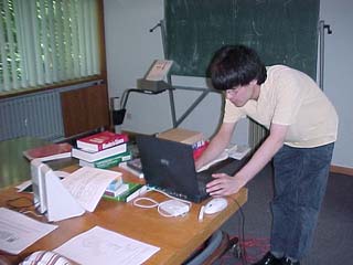 Christopher wie immer mit 1000 Büchern, Notebook und vor allem: Chaos.